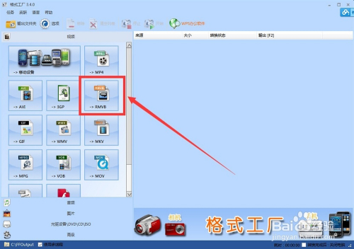 然后打开格局工场,还没有格局工场的小伙伴去百度搜一搜,先下载一个吧。打开格局工场之后,选择rmvb格局,作为转换视频之后的格局。有小伙伴就问了,为什么呢?因为呀,rmvb格局的视频,不仅体积小,并且转换后,画质转变很小,不像有些视频格局,转换完体积是小了,可是视频画面变得出格恍惚,不爽。