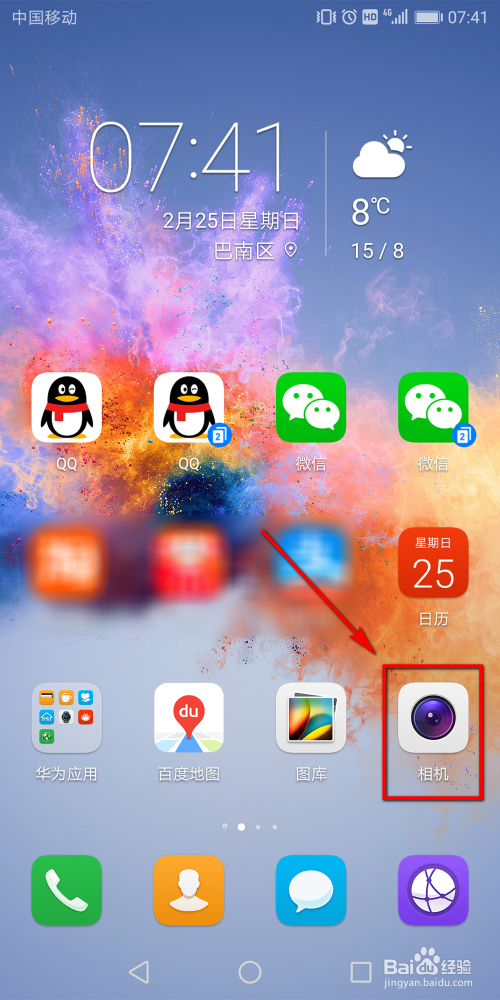 打开手机,在手机屏幕上点击摄影的图标,开启摄影功能。