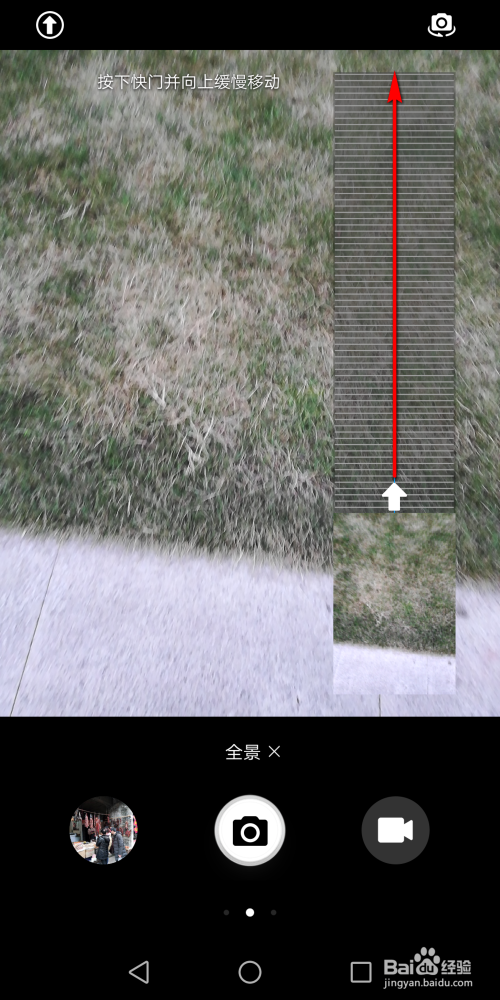 点击屏幕左上方的箭头符号就可以实现对将横式全景摄影切换为竖式全景摄影。