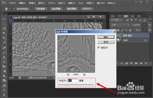 执行:滤镜——其他——高反差保留,半径值按照图片环境来定(一般2到5摆布);