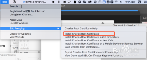 信赖完当作后点击 点击 help => SSL => Proxying => save Chariles Root Certificate 保留一下。