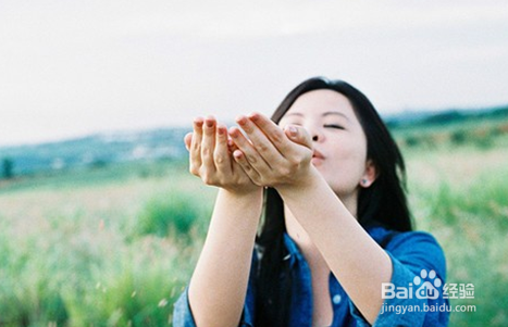 双手起,身体十字形,瞻仰天空,闭眼,无比沉醉幸福状。