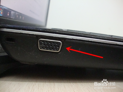 在笔记本电脑的一侧找到VGA的接口,如图。