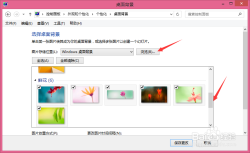 打开后,图中箭头指的处所是系统自带的桌面图片,选择一下看看结果