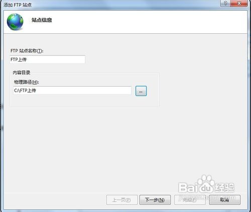 其次是在C盘新建文件夹“FTP上传”和“FTP下载”两个文件夹!并在每个文件夹里放分歧的文件,以便区分!
