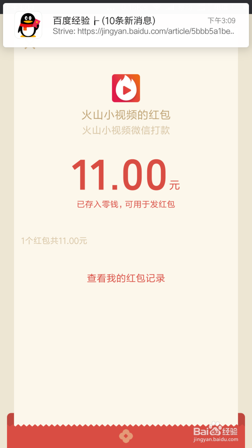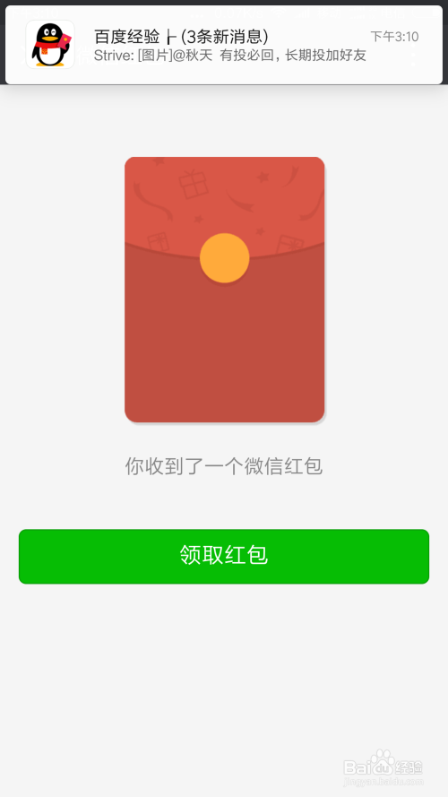 稍等,就会有“红包”呈现,然后点“领取红包”即可看到到账金额。