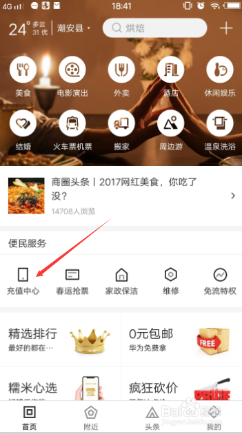 打开百度糯米,选择“充值中间”。