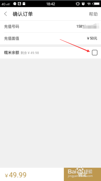 在糯米余额后面打钩。
