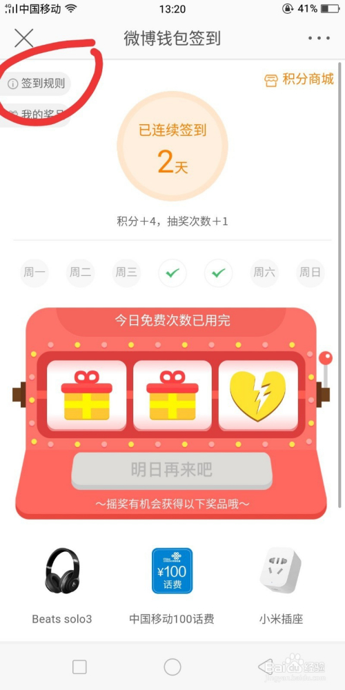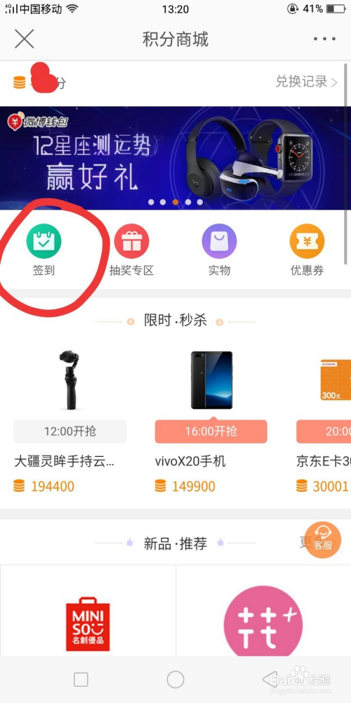 微博上天天签到可以得积分抽奖兑换礼品。操作进口、步调如下。