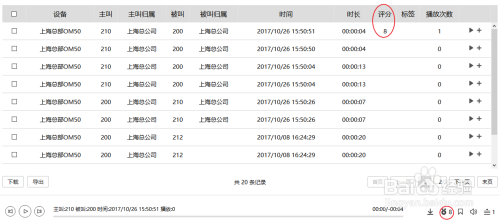 对查询获得的灌音记实,可选点某条播放。灌音播放时可进行灌音评分、打标签等操作。