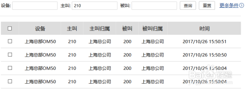 例如按本家儿叫查询,在本家儿叫输入框中输入210,点击查询可以获得分机210为本家儿叫的所有灌音。