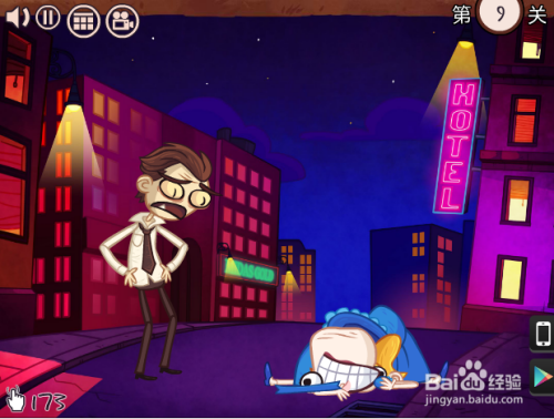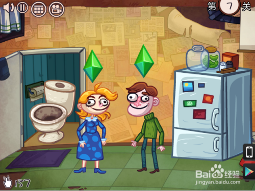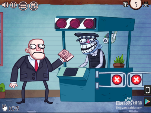 第四关,如何不开进茅厕。点茅厕,人快到树下时快速上下划树,然后再点一下屏幕。
