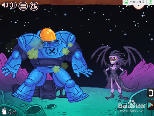 第二关,要机械人自爆。先把面罩关上,然后点这小我地下的洞,变胖后再点一下