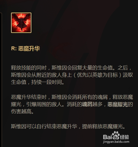 施放技术会恢复活命值,规模内对敌地契位罗致生命恢复本身,罗致到必然量的生命值之后就可以可以本家儿动施放二段R ‘恶魔耀光’按照拥有的魂屑造当作危险;若是不本家儿动开启二段 R 会在技术时候达到时施放 二段R;