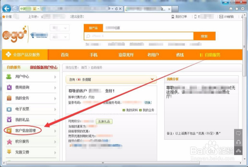 登录中国电信网上营业厅页面后,单击“用户中间”。