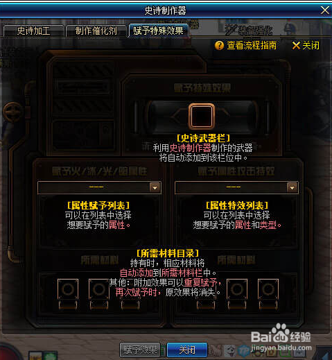此外,还可以经由过程耗损材料来给建造的史诗兵器付与特别结果,具体如下图所示: