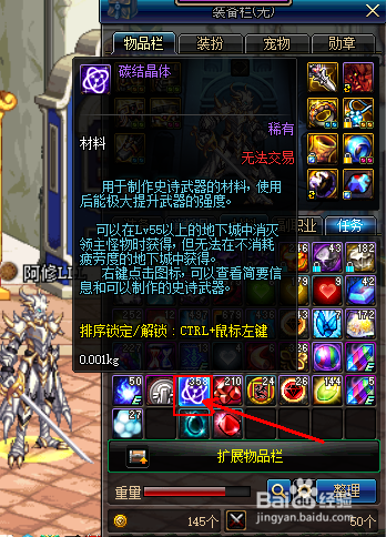 史诗建造用的碳结晶体在地下城中覆灭55级以上的领本家儿怪物时,必然会失落落一个碳结晶体,建造史诗兵器时,持有的碳结晶体将主动添加,每次耗损1个晶体,具体如下图所示: