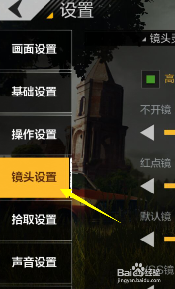 在根本设置下,我们需要点击镜头设置。