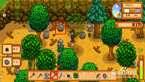 利用鹤嘴锄,天井里有良多石头供我们收集,除此之外到矿区也能采到石头。