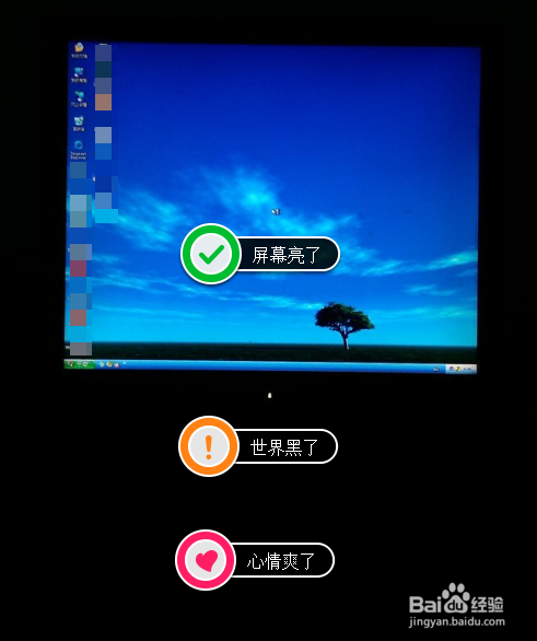 今天一开电脑本家儿机正常,显示器灯不亮了