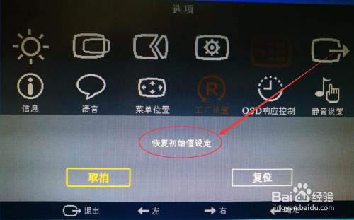 此刻显示器的设置已恢复到出厂状况了。