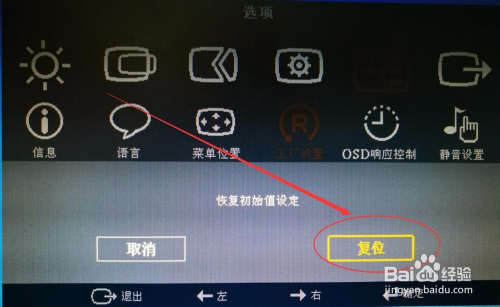 选择“复位”选项,按下确定键。