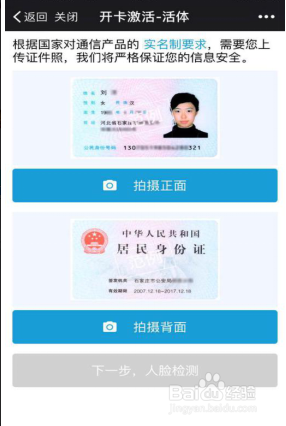 拍摄身份证正背面(需要清楚完整)别离上传,点击“下一步”