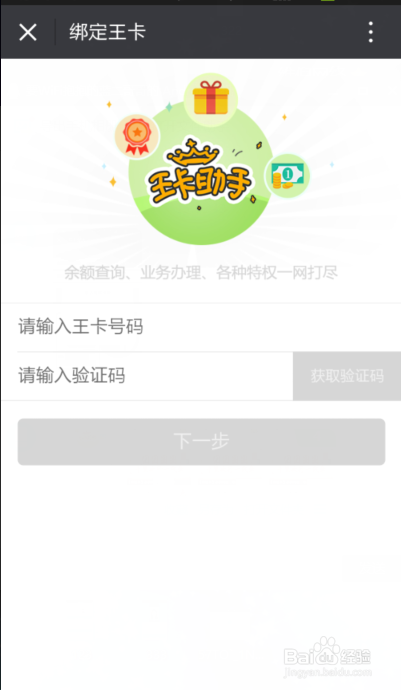 微信搜刮“王卡助手”存眷,在公家号界面点“开通”—-“绑定王卡”