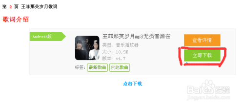 第三:进入到下载页面,你会看到一个王菲那英岁月mp3无损音的下载源,旁边有个当即下载,点击它就可以。