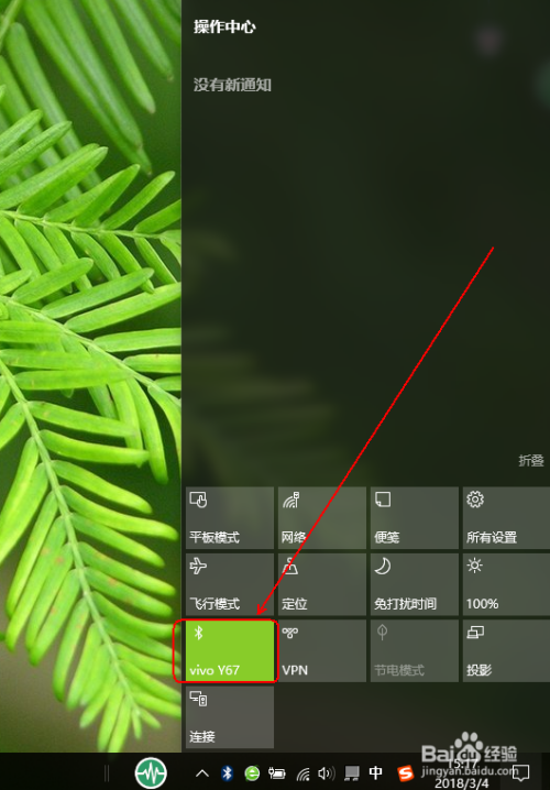 打开win10笔记本,在桌面找到右下角“操作中间”(前提是win10笔记本前次毗连的方针设备)。