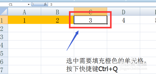 选中需要填充橙色的单位格,按下设置的快捷键即可填充橙色(本教材设置的快捷键为Ctrl+Q)。方针单位格已填充橙色,光标主动移动到了B1单位格。