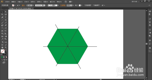 选择多边东西,按住Shift键绘制正六边形,将描边去失落,填充绿色。