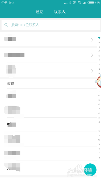 或者点击手机页面的通话,然后选择联系人,获得和步调2直接打开联系人一样的页面。此时可以看到今朝显示的所有联系人。