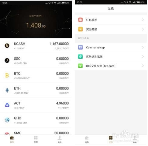 第二步、打开钱包本家儿页面,进入“发现”页面,选择“红保证理”;