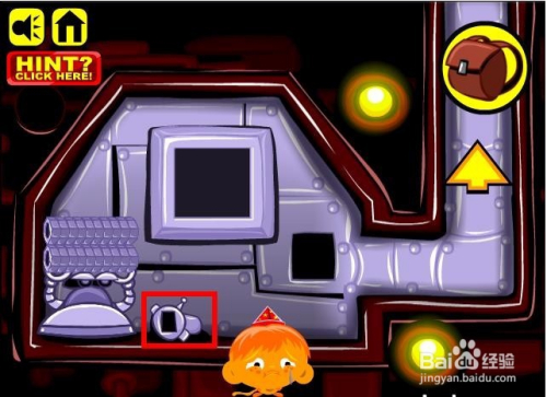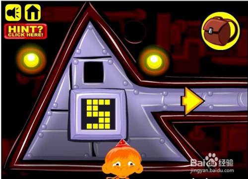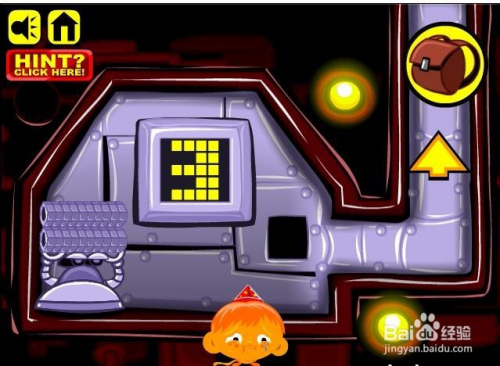 接下往返到游戏的起点,然后将电动钥匙开关安装在中心的圆孔处,然后点击开关,这里的门就被打开了,到此游戏通关,小山公也高兴的笑了。