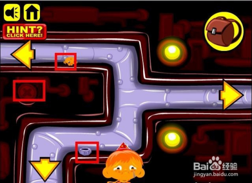 进入游戏后,呈现的是管道的一部门场景,这里本家儿要收集螺丝和小山公,能点的都收了,这里还有埋没的螺丝,也就是红色打叉的处所,点开后就可以看到螺丝。
