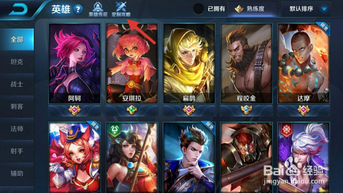 第四步:在所有英雄定制攻略页面里,可以看到王者荣耀的所有英雄,我们只需要随意点击一个英雄头像,就可以进入该英雄的具体信息页面。