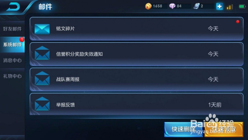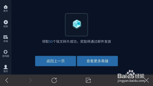 当作功领取铭文之后,系统会有一个领取50个铭文碎片当作功,奖励将经由过程邮件发放的提醒,然后我们就可以在邮箱里领取铭文了。