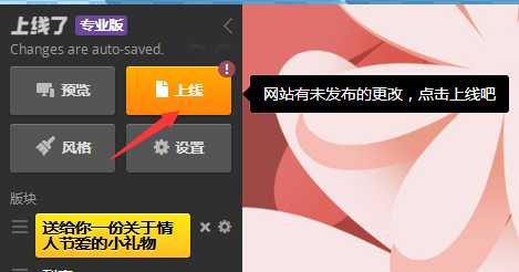 完当作编纂后,点击【上线】完当作里面的设置装备摆设就可以将你的免费站点上线了。不外免费版的话域名是不克不及本身定制的,只能用对应站点的二级域名,会相对个性化缺乏一点。