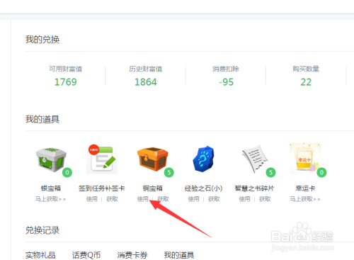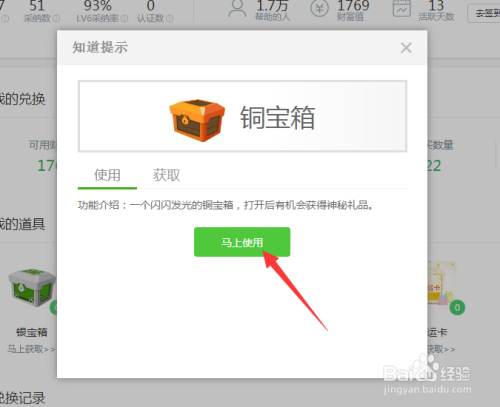 可以看到本身所有的物品,要打开铜宝箱,就点击下面的“利用”。