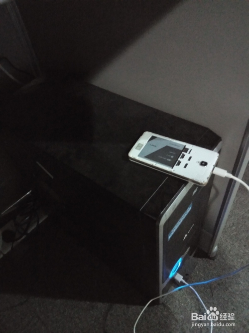 首先利用USB线毗连电脑和手机,如下图所示。