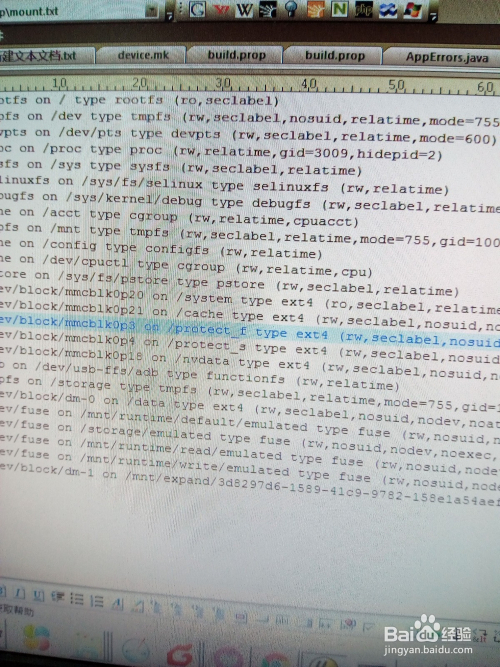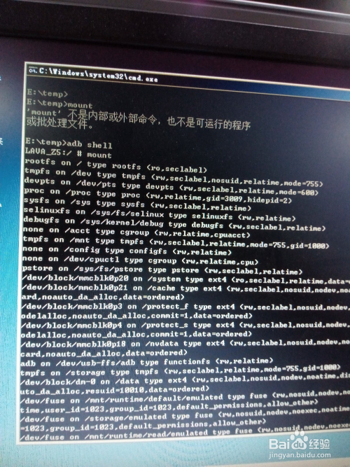 如何利用adb shell号令的mount可以查看手机分区类型。如下图所示。