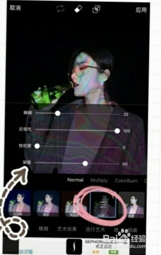选择功能栏里的“结果”,选择HDR2,调节渐暗至“60”即可,右上角保留即可