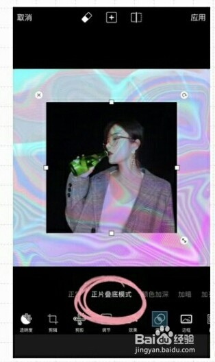 在夹杂模式功能中选择“正片叠底模式”(注重若是想完全透明,不建议用颜色过深的本家儿图,尽量选择白色布景,才可以或许达到布景也重叠梦幻的结果)