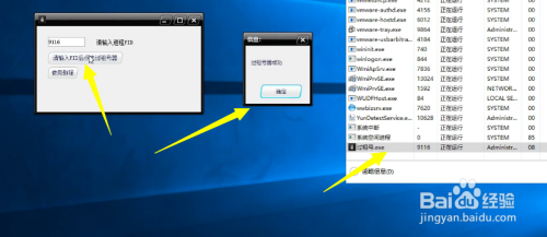 它的PID在我内存里的值是9116,那么我们这里直接在东西里输入9116,这个时辰会提醒我们过租号当作功。