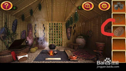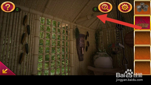 密屋逃走2古堡迷城第10关来到了一个竹子做得小屋里,里面布满了原生态,让我们看看怎么过吧