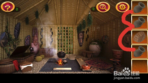 点击右边靠墙,获得第三个罐子,和一个筛子