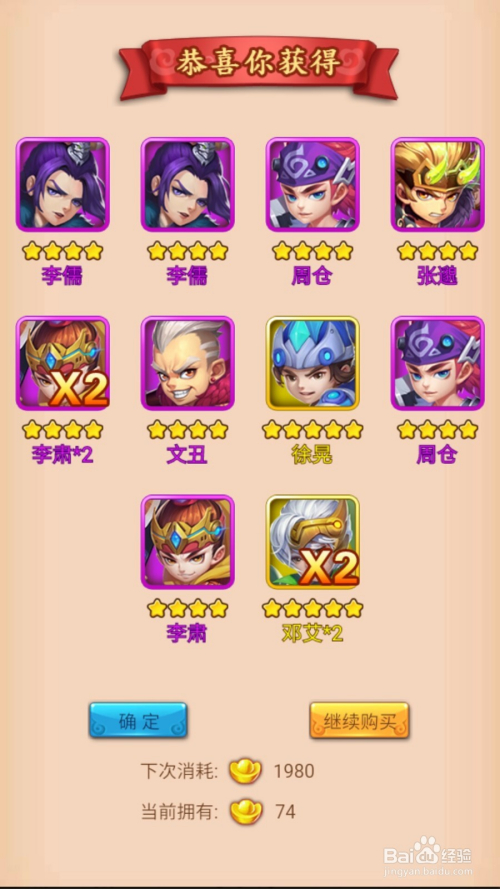 单次金币呼唤只能呼唤4星或5星的武将,获得多于的武将可以进行归并进级武将。