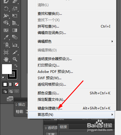 然后打开AI的软件界面,在编纂下找到首选,如下图所示: