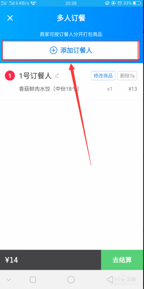 然后点击【添加订餐人】,如下图所示